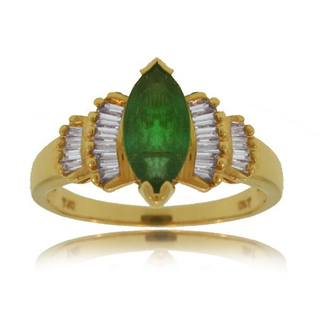 ※ On SaleEmerald Diamond Ring 14K Gold Marquise & Baguette Band