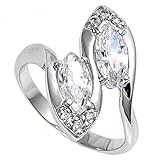 ※ Check OutSterling Silver Ring - Marquise-Shaped Clear CZ (Prong Set) - 19mm x 3mm - Sizes 5-10