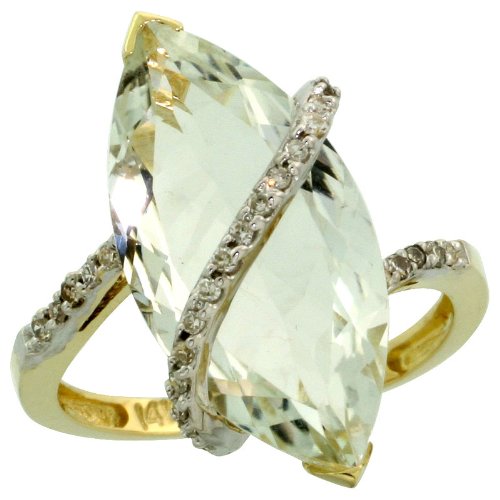 ※ Best review14k Gold Marquise Stone Ring, w/ 0.15 Carat Brilliant Cut Diamonds & 6.67 Carats Marquise Cut (20x10mm) Lime Topaz Stone, 7/8" (22mm) wide, size 8 This Gorgeous Ring is crafted from Solid 14 Karat Gold and set with Genuine Diamonds & Precious Gem. This Piece of Jewelry is Good-Looking, with Fabulous Quality. It has Good Weight and the Price is Very Reasonable. It'll definitely make a Brilliant Gift for yourself or a loved one on any occasion. We DO NOT use Blood Diamonds (Diamonds mined in war zones in Africa, also known as Converted, Conflict, Hot or War Diamonds). Sizes are available from 5.5 to 8.5, and they are readily selectable from the drop-down menu. Smaller or Larger Sizes may also be available for a nominal fee. Please feel free to contact us for any inquiries.