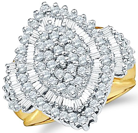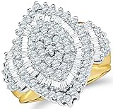 ※Best 10k Yellow Gold Large Marquise Shape Center Setting Round Cut & Baguette Engagement or Right Hand Cocktail Diamond Ring 23mm (2.03 cttw, H Color, I1 Clarity)