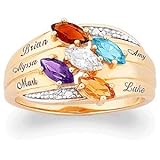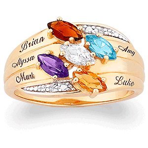Personalized Valentines Day Gift. The Perfect Gift for Mom Family ring features marquise-cut Austrian crystal and genuine Diamond accents in a setting of Sterling Silver with Gold overlay. Personalize with the names & birthstones of beloved family members. Choose 2 to 6 names (up to 10 letters each) and corresponding birthstones. Available in full sizes, 5 thru 12.