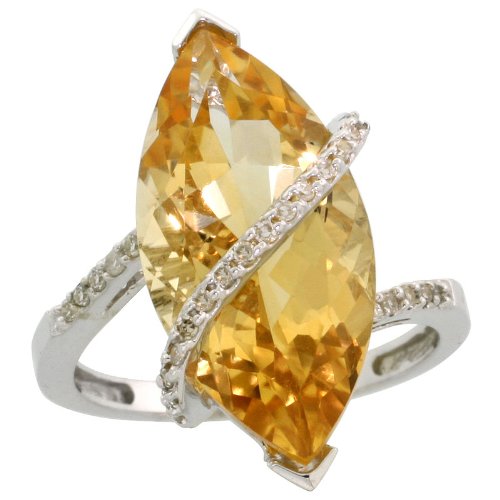 ※ Compare 14k White Gold Marquise Stone Ring, w/ 0.15 Carat Brilliant Cut Diamonds & 6.67 Carats Marquise Cut (20x10mm) Citrine Stone, 7/8" (22mm) wide, size 6