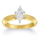 The classic marquise-cut solitaire ring is eternally popular. This perfect solitaire ring highlights the diamond with a 14K yellow gold cathedral band and platinum head to enhance the color and beauty of the diamond. This ring is supplied with IGI certification including retail replacement value for insurance purposes. For added security, the girdle of the diamond is laser-inscribed with the IGI certificate number.
