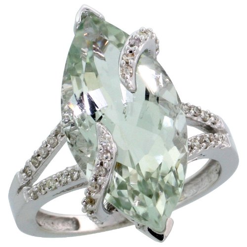 ※Save 14k White Gold Stone Ring, w/ 0.20 Carat Brilliant Cut Diamonds & 6.67 Carats (20x10mm) Marquise Cut Green Amethyst Stone, 7/8" (22mm) wide, size 8