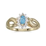 This 14k yellow gold marquise blue topaz and diamond ring features a 6x3 mm genuine natural blue topaz with a 0.30 ct total weight.