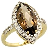 ※Save 10k Gold Marquise-shaped Ring, w/ Brilliant Cut White Sapphire Stones & Marquise Cut (16x8mm) Smoky Topaz Stone, 3/4 in. (20mm) wide