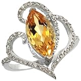 ※ Good price 14k White Gold ( 14x7 mm ) Stone Engagement Citrine Ring w/ 0.33 Carat Brilliant Cut Diamonds & 2.30 Carats Marquise Cut Stone