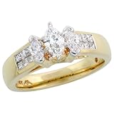 This Ring is crafted from Solid 14 Karat Gold and set with Genuine Diamonds. We do not use Blood Diamonds (Diamonds mined in war zones in Africa, also known as conflict, converted, hot or war diamonds). The quality of this piece of jewelry is excellent, and will definitely make a nice, reasonably-priced gift for yourself or a loved one on any occasion. Sizes are available from 5 1/2 to 8 1/2.