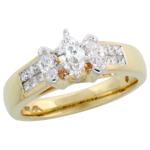 ※ Buying14k Gold Three-Stone Diamond Solitaire Ring, w/ 1.00 Carat Marquise Cut & Invisible Set Diamonds 1/4" (7mm) wide