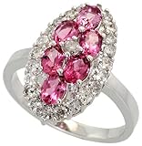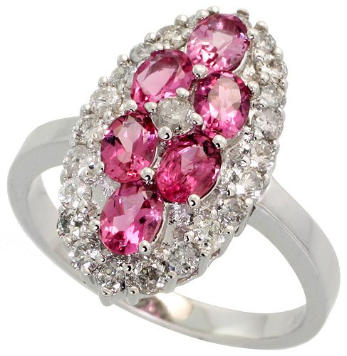 ※ Best14k White Gold Marquise-shaped Ring, w/ 1.90 Total Carat Brilliant Cut Diamonds & Oval Cut Pink Tourmaline Stones, 3/4 in. (19mm) wide, size 9