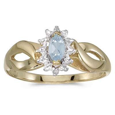 ※ New14K Yellow/White Gold 0.02 ct. Diamond and 6 x 3 MM Marquise Shaped Aquamarine Ring