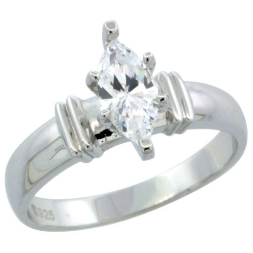 ※ Best Buy Sterling Silver 3/4 Carat Size (8x4mm) Solitaire Marquise CZ Engagement Ring, 3/16 in. (5mm) wide, Size 7