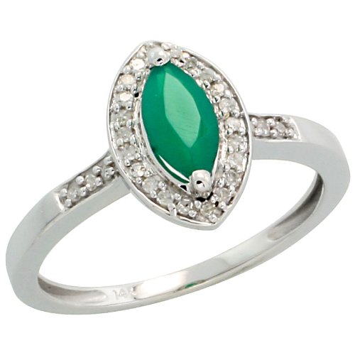 ※ Big Deals 14k White Gold Marquise-shaped Stone Ring, w/ 0.10 Carat Brilliant Cut Diamonds & 0.63 Carat Marquise Cut (8x4mm) Green Agate Stone, 7/16 in. (11mm) wide