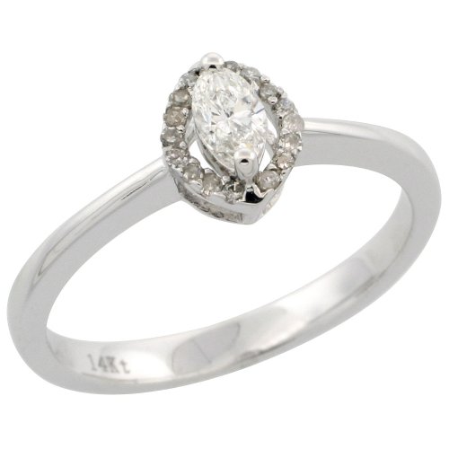 ※ Big Deals 14k White Gold Solitaire Diamond Ring, w/ 0.28 Carat Marquise Cut & Brilliant Cut Diamonds, 9/32 in. (7mm) wide (Available in Sizes 5.5 to 8.5)