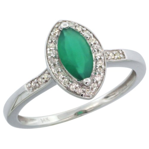※ Best review14k White Gold Engagement Stone Ring w/ 0.10 Carat Brilliant Cut Diamonds & 0.63 Carat 8x4mm Marquise Cut Green Agate Stone, 7/16 in. (11mm) wide, size 8