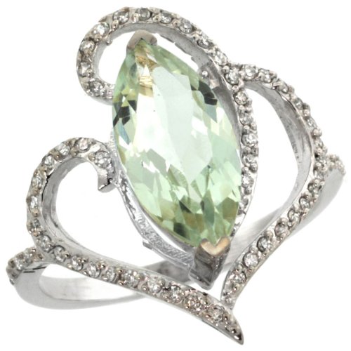 ※ Best buy14k White Gold ( 14x7 mm ) Stone Engagement Green Amethyst Ring w/ 0.33 Carat Brilliant Cut Diamonds & 2.40 Carats Marquise Cut Stone, size 7.5