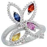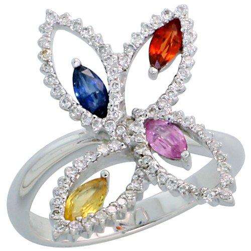 ※ Cheap 14k White Gold Floral Stone Ring, w/ 0.32 Carat Brilliant Cut Diamonds & 0.73 Carat Marquise Cut Multi-Color (Blue, Pink, Yellow & Red) Sapphire Stones, 13/16 in. (21mm) wide, size 8.5
