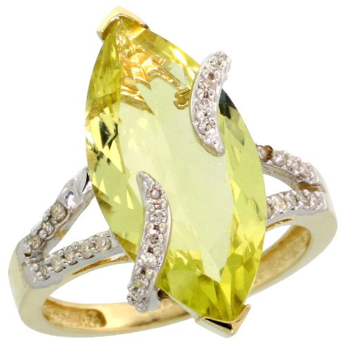 ※Great 14k Gold Stone Ring, w/ 0.20 Carat Brilliant Cut Diamonds & 6.67 Carats (20x10mm) Marquise Cut Lime Topaz Stone, 7/8" (22mm) wide, size 5.5
