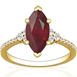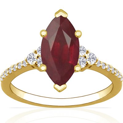 ※ New14K Yellow Gold Marquise Cut Ruby Ring With Sidestones