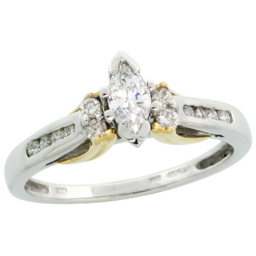 ※ Good price 18k 2-Tone Gold Solitaire Ring, w/ 0.50 Carat Marquise & Brilliant Cut Diamonds, 5/16 in. (8mm) wide, size 7.5