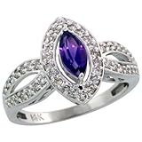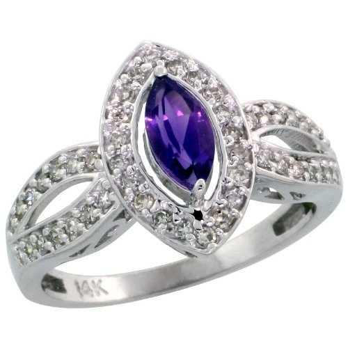 ※ Best Buy14k White Gold Marquise-shaped Ring, w/ 0.26 Carat Brilliant Cut Diamonds & 0.38 Carat (7x3.5mm) Marquise Cut Amethyst Stone, 1/2" (13mm) wide, size 8.5 This Beautiful Ring is crafted from Solid 14 Karat Gold and set with Genuine Diamonds & Precious Gem. This Piece of Jewelry is Good-Looking, with Fabulous Quality. It has Good Weight, and the Price is Very Reasonable. It'll definitely make a Brilliant Gift for yourself or a loved one on any occasion. We DO NOT use Blood Diamonds (Diamonds mined in war zones in Africa, also known as Converted, Conflict, Hot or War Diamonds). Sizes are available from 5.5 to 8.5, and they are readily selectable from the drop-down menu. Smaller or Larger Sizes may also be available for a nominal fee. Please feel free to contact us for any inquiries.