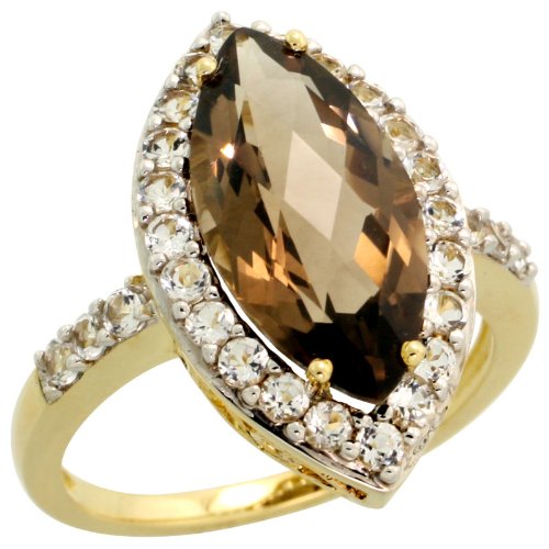 ※ Good price 10k Gold Marquise-shaped Ring, w/ Brilliant Cut White Sapphire Stones & Marquise Cut (16x8mm) Smoky Topaz Stone, 3/4 in. (20mm) wide