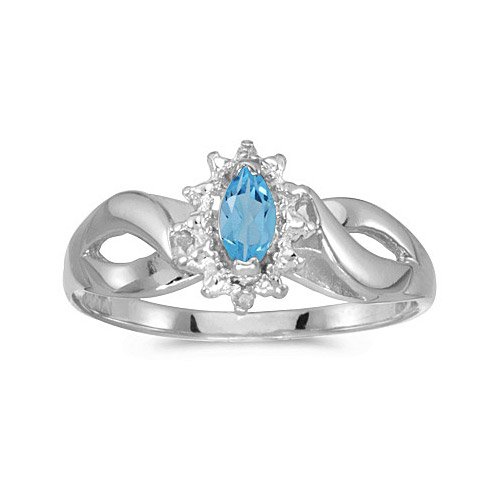 This 14k white gold marquise blue topaz and diamond ring features a 6x3 mm genuine natural blue topaz with a 0.30 ct total weight.