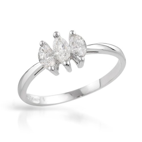 ※Save 77% Three-stone Ring With 0.65ctw Genuine Marquise Cut Clean Diamonds Beautifully Designed in 14K White Gold- Size 7 (Size 7)