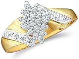 ※ Buying10k Yellow and White Two 2 Tone Gold Marquise Shape Center Cluster Style Round Cut Diamond Engagement Ring 10mm (1/8 cttw, H Color, I1 Clarity)