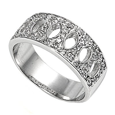 ※ NewSterling Silver Ring - Marquise Cut-outs, Clear CZ - 8mm x 5mm - Sizes 6-10