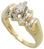 ※ Cheap 14k Gold Solitaire Ring, w/ 0.22 Carat Marquise Cut & 0.15 Carat Baguette Diamonds, 5/16 in. (8mm) wide, size 6