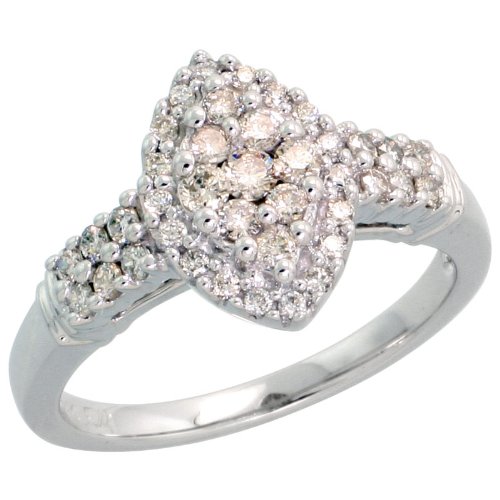 ※Super Save! 14k White Gold Marquise-shaped Diamond Cluster Ring, w/ 0.50 Carat Brilliant Cut Diamonds, 1/2 in. (12mm) wide, size 7.5