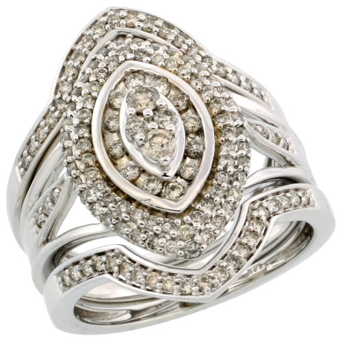※ Low Price 14k White Gold 3-Piece Marquise-shaped Diamond Ring Set, w/ 1.00 Carat Illusion Set Brilliant Cut Diamonds, 7/8 in. (22mm) wide