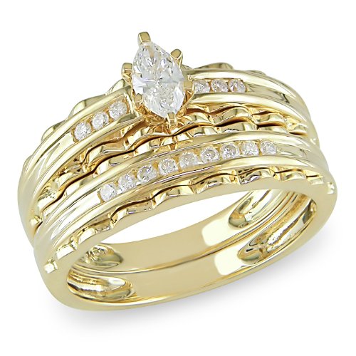 ※ Buying10K Yellow Gold 3/8 CT TDW Marquise and Round Diamond Bridal Set Ring (G-H, I2-I3)