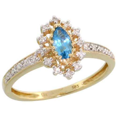 ※Save big14k Gold Marquise-shaped Diamond Ring, w/ 0.32 Total Carat Brilliant Cut Diamonds & Marquise Cut (6x3mm) Blue Topaz Stone, 7/16" (11.5mm) wide, size 7