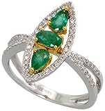 ※ Buy Cheap14k White Gold Marquise-shaped Ring, w/ 0.19 Carat Brilliant Cut Diamonds & 0.71 Carat Pear/Oval Cut Emerald Stones, 3/4 in. (19mm) wide, size 8
