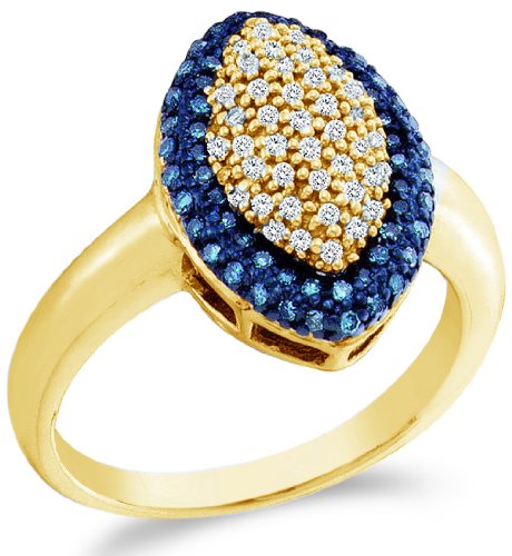 ※ On Sale10k Yellow OR White Gold Blue and White Diamond Marquise Shape Center Pave Setting Round Cut Ladies Diamond Engagement Ring Band (1/3 cttw, H Color, I1 Clarity)