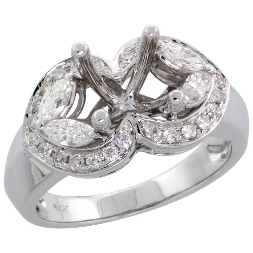 ※ Low Price 14k White Gold Double Heart Semi-Mount Diamond Ring, w/ 0.55 Carat Brilliant Cut & Marquise Cut Diamonds, 3/8 in. (10mm) wide This Stunning Ring is crafted from Solid 14 Karat Gold and set with Gorgeous Diamonds. This is a Semi-Mount Ring which will give you the liberty to have your favorite stone placed on it. (Center Stone is NOT INCLUDED with the purchase of this piece of jewelry). The Quality is Amazing and the Price is Very Reasonable. A 6mm Round Brilliant Cut Stone would be a Perfect Match for this Beautiful Ring. It will definitely make an AWESOME Gift for yourself or someone close to your heart. Sizes are available from 5.5 to 8.5, and they are readily selectable from the drop-down menu. Smaller or Larger Sizes may also be available for a nominal fee. Please feel free to contact us for any inquiries.