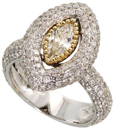 ※Buy online 14k White Gold Fancy Solitaire Ring, w/ 0.60 Carat 8x4mm Marquise Cut at the Center & 2.20 Carats Brilliant Cut Diamonds, 11/16 in. (18mm) wide