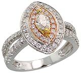 ※ Compare14k White Gold Marquise-shaped Solitaire Ring, w/ 1.36 Carats Brilliant Cut & Marquise Cut Diamonds, 5/8 in. (16mm) wide, size 8.5