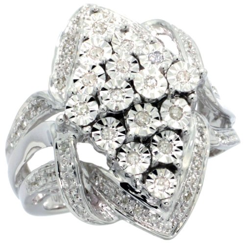 ※ Best review10k White Gold Large Marquise Shape Diamond Ring w/ 0.25 Carat Brilliant Cut Illusion Set Diamonds, 15/16 in. (24mm) wide, size 8.5